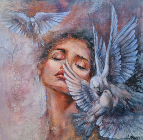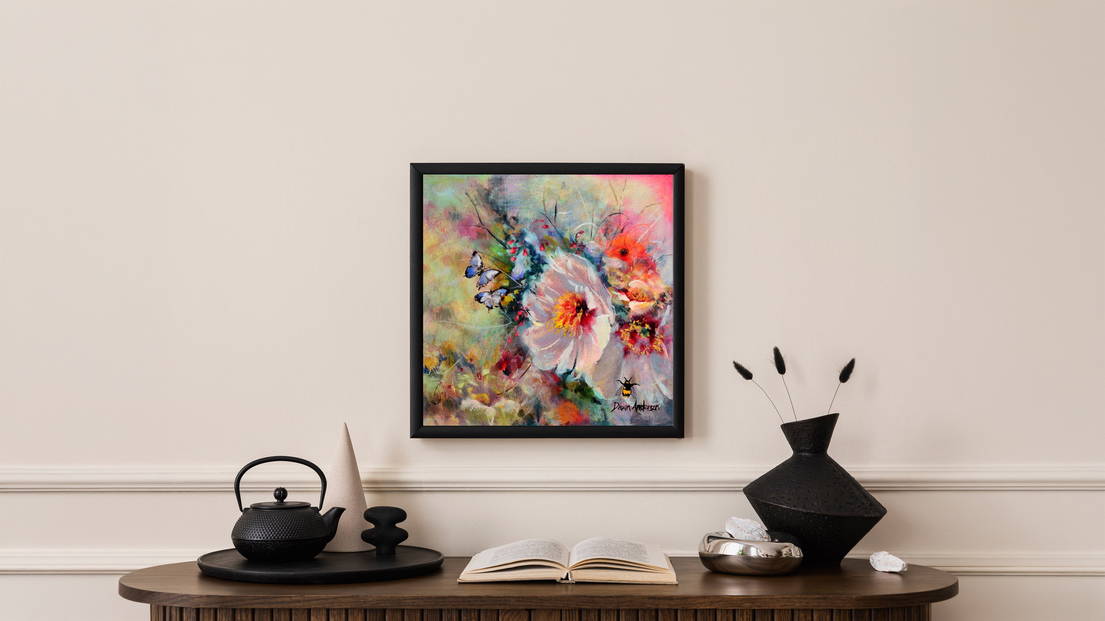 Each piece begins with a spark. Sometimes it is a fleeting colour combination, sometimes a texture, sometimes a quiet moment waiting to be translated into something bold and alive. Dawn’s work balances playfulness with intention, inviting you to pause, look closer, and discover something new each time.